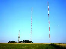 In 1986 a 62-metre-tall telecommunication tower was built nearby for directional radio services. A second mast for TV transmission with a height of 231 metres was built in 1991. This mast is, like the old mast, grounded and equipped with a cage antenna for medium wave broadcasting. After completion of this mast, the old mast is used only as a backup antenna mast.