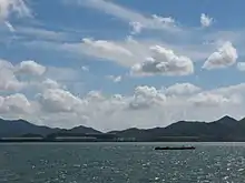 The district spans 128 islands, including Zhoushan Island, Jintang Island, Damao Island (大猫岛), Cezi Island, Changbai Island, and Aoshan Island.[5] Other islands include Changzhi Island (长峙岛) and Panzhi Island (盘峙岛).[4] Many of the islands have hilly terrain, and the highest point in the district is Huangyanjian Mountain (黄杨尖山), which reaches 503.6 meters in altitude.[5]