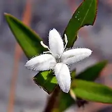 Diodia virginiana is a plant species in the Rubiaceae, common name Virginia buttonweed. It is a spreading, matted perennial with opposite leaves, often mottled because of a virus that attacks the foliage. Flowers are white, cross-shaped with 4 petals. Fruits are green, often floating on water. The species can become a nuisance weed, hard to eradicate because of underground parts that remain behind when you try to pull up the plant.[1]