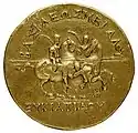 ![]() Coin of Eucratides the Great with the Dioscuri, along with Thundering Zeus, serving as the symbols of the Diodotids. | |