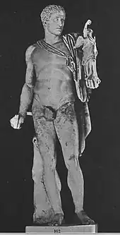 The Greeks and Romans credited Diomedes with the foundation of several Greek settlements in Magna Graeca in southern Italy:[37] Argyrippa or Arpi, Aequum Tuticum (Ariano Irpino), Beneventum (Benevento), Brundusium (Brindisi), Canusium (Canosa), Venafrum (Venafro), Salapia, Spina, Garganum, Sipus (near Santa Maria di Siponto),[38] Histonium (Vasto), and Aphrodisia or Venusia (Venosa). The last was made as a peace-offering to the goddess, including temples in her honor.[39]