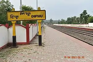 Diphu Railway Station (Station Code: DPU) is the main railway station of Diphu town, headquarter of Karbi Anglong district in Assam. It is under Lumding railway division of Northeast Frontier Railway zone of Indian Railways. It is located on Lumding–Dibrugarh section main line of the Indian Railways. Many important trains like Dibrugarh Rajdhani Express, Kamrup Express etc. passes through this station.[1][2]