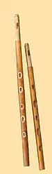 The diplica has a traditional mouth horn that holds an idioglot reed and two pipes carved from one piece of wood.[1] The pipe has a few (usually five) finger holes drilled into it. It is usually in the key of E, although it can be made in C, D, or F.