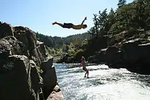 The majority of accidents that are classified as 'diving-related' are incidents caused by individuals jumping from structures such as bridges or piers into water of inadequate depth. Many accidents also occur when divers do not account for rocks and logs in the water. Because of this many beaches and pools prohibit diving in shallow waters or when a lifeguard is not on duty.[13]