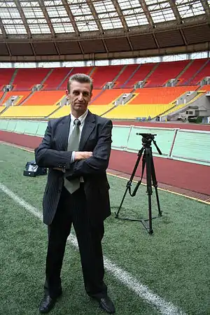 In 2002, he moved to Moscow. From 2004 to 2009 — chief technologist of the Luzhniki Olympic Complex. He was the main executor of works on preparation of the Luzhniki Stadium to the Uefa Champions League final on 21 May 2008 (a portable natural field).[5][6][7] At his own expense he built a mini-soccer field in the kindergarten in the Kuzminki, where he began to train children of preschool age. In 2010, he initiated and created a federation of football on the version of K2 (two touches).[8] He is married with two children[9] and is fluent in English.[10]
