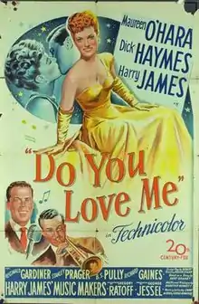 Do You Love Me is a 1946 American Technicolor musical romance film directed by Gregory Ratoff and starring Maureen O'Hara, Dick Haymes and Reginald Gardiner .[4][5] The film also features band leader Harry James and his Orchestra. It was produced and distributed by 20th Century-Fox. Betty Grable makes a cameo at the end of the film. At the time Harry James was married to contracted Fox star Betty Grable.
