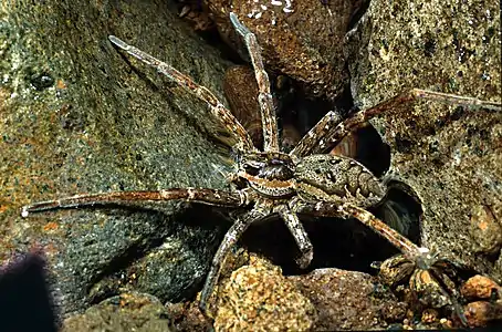 - 1 2 Martin Nyffeler; Bradley J Pusey (2014). "Fish predation by semi-aquatic spiders: a global pattern". PLOS One. 9 (6): e99459. Bibcode:2014PLoSO...999459N. doi:10.1371/JOURNAL.PONE.0099459. ISSN 1932-6203. PMC 4062410. PMID 24940885. Wikidata Q21132013.