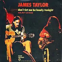 "Don't Let Me Be Lonely Tonight" is a song written and performed by American singer-songwriter James Taylor, from his 1972 album One Man Dog. The song has been included on three of Taylor's greatest-hits collection albums: Greatest Hits (1976), Classic Songs (1987) and The Best of James Taylor (2003). Taylor re-recorded the song for the 2001 Michael Brecker album Nearness of You: The Ballad Book; this rendition won Taylor the Grammy Award for Best Male Pop Vocal Performance in 2002.