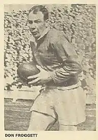 Donald Froggett (1929 – 12 February 2011) was an English professional rugby league footballer who played in the 1940s and 1950s. He played at representative level for England and Yorkshire, and at club level for Wakefield Trinity (Heritage № 572) (captain), as a centre, i.e. number 3 or 4.[1]