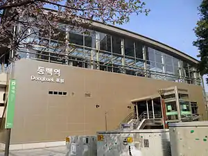 Dongbaek Station (Korean: 동백역; Hanja: 東栢驛) is a station of the Everline in Jung-dong, Giheung-gu, Yongin, South Korea.