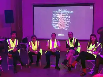 Cypis has developed several public programs in Los Angeles, many involving communities and law enforcement. In 2014, after partnering with the Los Angeles Department of Human Relations to gain understanding of chronic community conflict, she co-founded North East Youth Council (NEYC) to build leadership skills for at-risk-youth, develop community projects, and improve relations with police.[5][13] She has partnered with Days of Dialogue – The Future of Policing since 2015 as dialogue facilitator and has designed numerous forums on race and identity.[13][69] In 2018, Cypis founded the platform PeoplesLab – transforming conflict into possibility, which employs somatic, perceptual, psychological and procedural communication skills-training to engage conflict and develop capacity for creative social-justice change.[12][13] She presented One Another, an interactive presentation exploring strategies for intimate engagement across difference, in 2019 at NAVEL in Los Angeles.[70]