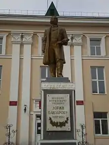 A statue of him was installed in June 2010 in Dzhidinsky District to celebrate the 75th anniversary of the founding of the district. The sculptor was Buryat G. G. Vasilyev.[18] There is also a statue of him in Ulan-Ude, and a memorial to him at Kazan University, installed in October 2020.[19]