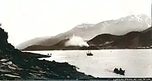 Douglas Island was named for John Douglas, Bishop of Salisbury, by Captain George Vancouver. Joseph Whidbey, master of HMS Discovery during Vancouver's expedition, was the first to sight it in 1794.[1] In 1886, people began to travel to Douglas Island to settle near the developing Treadwell gold mine. By 1902, the Douglas Island community had grown to a population of over 2800 residents, as businesses, schools, and homes began to develop alongside the expansion of the nearby gold mine. After the Gastineau Channel flooded the Treadwell mining tunnels in 1917, many residents were forced to move after the town's dramatic economic downturn, causing the Douglas population to decrease steadily until the late 1930s.[2]