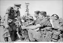 ![]() Vincent speaks to 2RAR troops on HMAS Sydney | |