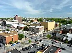 Downtown Columbia is the central business, government, and social core of Columbia, Missouri and the Columbia Metropolitan Area. Three colleges — the University of Missouri, Stephens College, and Columbia College — all border the area. Downtown Columbia is an area of approximately one square mile surrounded by the University of Missouri on the south, Stephens College to the east, and Columbia College on the north. The area serves as Columbia's financial and business district and is the topic of a large initiative to draw tourism, which includes plans to capitalize on the area's historic architecture and Bohemian characteristics.[2] The downtown skyline is relatively low and is dominated by the 10-story Tiger Hotel, built in 1928, and the 15-story Paquin Tower.[3][4]