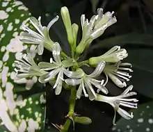 Dracaena surculosa, called the gold dust dracaena and spotted dracaena, is a species of flowering plant in the family Asparagaceae, native to west and west-central tropical Africa, from Guinea to the Republic of the Congo.[2][1] Its cultivar 'Florida Beauty' has gained the Royal Horticultural Society's Award of Garden Merit.[3]