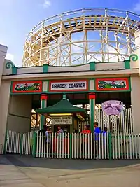 The Dragon Coaster is a wooden roller coaster at Playland amusement park in Rye, New York. Opened in 1929, it was designed and built by amusement ride creator Frederick Church,[1] the co-inventor of the Racing Derby, another early 20th century amusement park ride. The Dragon Coaster has approximately 3,400 feet of track and is, at its highest, approximately 80 feet tall. There is a tunnel along its span, a common feature of wooden roller coasters from the 1920s, that resembles the body and open mouth of a dragon. It was featured in the film Fatal Attraction,[2] Mariah Carey's music video "Fantasy", and Big, starring Tom Hanks. The Dragon Coaster is still in operation.
