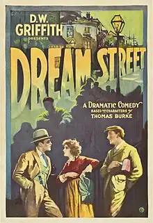 Dream Street is a 1921 American silent romantic drama film directed by D. W. Griffith, and starring Carol Dempster, Charles Emmett Mack, and Ralph Graves in a story about a love triangle set in London, and based on two short stories by Thomas Burke, "Gina of Chinatown" and "Song of the Lamp". The cast also features Tyrone Power Sr.