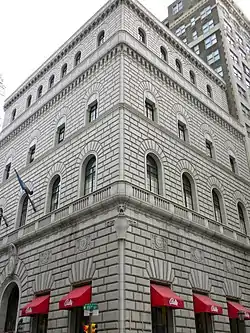 Drexel and Company Building, also known as the Drexel Building, is a historic bank building located in the Rittenhouse Square East neighborhood of Philadelphia, Pennsylvania. It was built between 1925 and 1927, and is a six-story, building with basement and penthouse in a Renaissance Palazzo style. It is faced in ashlar granite and features a rounded entrance portal, low relief zodiac roundels, carved shields, and wrought iron lamps. It was built as headquarters for Drexel and Company, which was subsequently dissolved in the 1930s. It was then occupied by a local bank.[2]