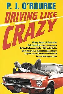 Driving Like Crazy: Thirty Years of Vehicular Hell-Bending, Celebrating America the Way It’s Supposed to Be -- With an Oil Well in Every Backyard, a Cadillac Escalade in Every Carport, and the Chairman of the Federal Reserve Mowing Our Lawn is a 2009 book by P. J. O'Rourke about the automobile. Its chapters include The End of the American Car, The Rolling Organ Donors Motorcycle Club, Getting Wrecked, The Geezers Grand Prix, and Call for a New National Park.