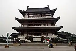 Du Fu River Pavilion (simplified Chinese: 杜甫江阁; traditional Chinese: 杜甫江閣; pinyin: Dù Fǔ Jiāng Gé) is a Chinese pavilion located on the bank of Xiang River, in Tianxin District of Changsha, Hunan, China, built in memory of the Tang (618–907) poet Du Fu (712–770).[1] It is a part of Xiang River Scenery Belt.[1] The pavilion occupies a building area of 3,800-square-metre (41,000 sq ft) and the total area is over 6,000-square-metre (65,000 sq ft).[1] It is adjacent to Orange Isle and Yuelu Mountain.[1]