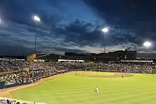 In 1987, the American Tobacco Factory in Durham closed, leading to an economic downturn and a decline in the city's reputation.[39] A new downtown baseball stadium was constructed for the Durham Bulls in 1994. The Durham Performing Arts Center now ranks in the top ten in theater ticket sales in the US according to Pollstar magazine. Many famous people have performed there including B.B. King and Willie Nelson. After the departure of the tobacco industry, large-scale renovations of the historic factories into offices, condominiums, and restaurants began to reshape downtown.[40] While these efforts continue, the large majority of Durham's residential and retail growth since 1990 has been along the I-40 corridor in southern Durham County.[41]
