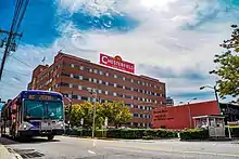 In recent years the city of Durham has stepped up revitalization of its downtown and undergone an economic and cultural renaissance of sorts. Partnering with developers from around the world, the city continues to promote the redevelopment of many of its former tobacco districts, projects supplemented by the earlier construction of the Durham Performing Arts Center and new Durham Bulls Athletic Park.[42] The American Tobacco Historic District, adjacent to both the athletic park and performing arts center, is one such project, having successfully lured a number of restaurants, entertainment venues, and office space geared toward hi-tech entrepreneurs, investors, and startups.[43] Many other companies have purchased and renovated historic buildings, such as Measurement Incorporated and Capitol Broadcasting Company. The American Underground section of the American Tobacco Campus, home to successful small software firms including Red Hat, was selected by Google to host its launch of the Google Glass Road show in October 2013.[44] The district is also slated for expansion featuring 158,000 square feet of offices, retail, residential or hotel space[45] The Durham County Justice Center, a major addition to downtown Durham, was completed in early 2013.