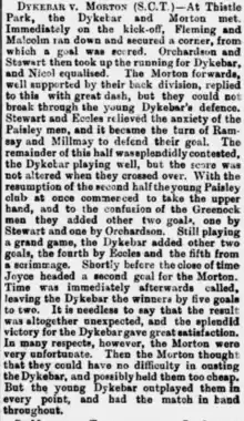 - ↑ "Dykebar v Morton". Greenock Telegraph: 4. 5 September 1887.