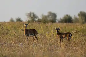 The plants on the island are specialized for the environment, and include psammophytes (plants that grow in loose and shifting sand), halophytes (plants adapted to saline habitats), reed-beds in fresh and saline wetlands, the representative flora of coastal meadows and seaside steppe, and synanthropes (wild plants associated with proximity to humans, in this case tree and shrub plantations). Over 500 species of vascular plants, in 72 families are recorded in the terrestrial borders of the park.[1][3]