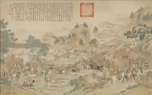 - "The Victory of Khorgos". The partisans of Amursana were defeated in 1758 by Prince Cäbdan-jab. Painting by Jean Denis Attiret.[45]