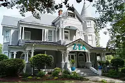 E. B. Ficklen House, also known as Buckingham, is a historic home located at Greenville, Pitt County, North Carolina. It was built in 1902, and is a two-story, Queen Anne style frame dwelling with an exaggerated hip roof. It features a circular corner tower capped by a conical roof, projecting gable, and complicated porch configuration including a first floor wraparound porch with three Ionic order columns.[2]