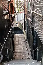 In a basement opposite Ealing Broadway station, it is reached by descending the narrow steps of the alley that leads to Haven Place. Korner and Davies moved their blues club at the Roundhouse pub in Wardour Street, the London Blues and Barrelhouse Club, to Ealing on 17 March 1962 after it was ejected for going electric. The Ealing venue had been suggested to them by Blues Incorporated singer Art Wood.