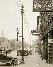 In the 1910s Lightner and his brother Ralph, a mechanic, operated an automobile repair garage on the street.[11] In 1921 Lightner built the Lightner Arcade and Hotel across the street from the Lightner Building.[7] The arcade quickly became a center of social activity for Raleigh's black community, and was considered one of the best hotels for black clientele along the East Coast of the United States.[18] During its existence it was one of two hotels in Raleigh that would accept black customers[11] and hosted musicians Cab Calloway, Count Basie, and Duke Ellington.[19] The building also housed a theater (for both movies and vaudeville performances),[20] a restaurant, barbershop, and the offices of The Carolinian, a black twice-weekly newspaper.[21] Hamlin Drug moved into the building before relocating to an adjacent structure.[22] Black civic leader and physician Manassa Thomas Pope maintained offices in the Hamlin building before relocating down the street.[6]