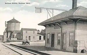 Eastham station was a train station in Eastham, Massachusetts. It was built by the Old Colony Railroad around 1870 when the rail line was extended from Orleans to Wellfleet. Passenger service to this station ended in 1941 when the New Haven Railroad discontinued scheduled service between Yarmouth and Provincetown.