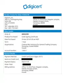 DigiCert Certification | N/A |
