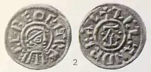 Ecgberht's dominion over southern England came to an end with Wiglaf's recovery of power. Wiglaf's return is followed by evidence of his independence from Wessex. Charters indicate Wiglaf had authority in Middlesex and Berkshire, and in a charter of 836 Wiglaf uses the phrase "my bishops, duces, and magistrates" to describe a group that included eleven bishops from the episcopate of Canterbury, including bishops of sees in West Saxon territory.[37] It is significant that Wiglaf was still able to call together such a group of notables; the West Saxons, even if they were able to do so, held no such councils.[28][38] Wiglaf may also have brought Essex back into the Mercian orbit during the years after he recovered the throne.[25][39] In East Anglia, King Æthelstan minted coins, possibly as early as 827, but more likely c. 830 after Ecgberht's influence was reduced with Wiglaf's return to power in Mercia. This demonstration of independence on East Anglia's part is not surprising, as it was Æthelstan who was probably responsible for the defeat and death of both Beornwulf and Ludeca.[25]