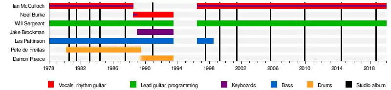- Ian McCulloch – vocals, guitar, keyboards (1978–1988, 1996–present)