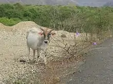 The World Wildlife Fund gives the ecoregion the status of "Critical/Endangered".[10] The ecoregion shows the impact of human occupation over several centuries, mostly in the transition zone and along watercourses. The growth of farming in western Ecuador has destroyed 99% of the original dry forest. The present forest consists mostly of secondary growth remnants scattered across the region.[10] Under 25% of the original area is still covered by dry forest.[3] The western Ecuadorian forests, including the Ecuadorian dry forests, has one of greatest risks in the world of biological extinction due to human activities such as deforestation. The main threats come from deforestation, including selective removal of valuable tree species, slashing and burning to clear and for agriculture, planting crops on unstable hillsides and overgrazing. Most vertebrates in the ecoregion, many of which are endemic, face great risks of extinction.[10]