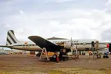 The airline's livery featured a tailfin logo of alternating blue and white diagonal stripes. The airline operated Lockheed L-188 Electra four-engined turboprop airliners on longer distance scheduled passenger services, including the key Quito-Bogota-Miami route, between March 1967 and March 1975.[3]