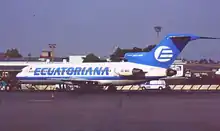 Empresa Ecuatoriana de Aviación, more commonly known as simply Ecuatoriana, was the national airline of Ecuador.[1] The carrier had an operational hiatus between September 1993[1] and August 1995, resuming operations on 23 June 1996, after VASP became the controlling shareholder. The airline folded permanently in 2006.