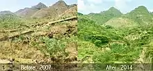 With the second largest population in Africa, Ethiopia has been hit by famine many times due to drought and a depletion of natural resources.[11] The country has lost 98% of its forested regions in the last 50 years, largely due to villagers cutting down forests to cultivate crops on the land and produce charcoal for cooking and heating.[12] Those practices had quickly turned productive land into desert, which led to an increase in poverty for the local communities.[13]