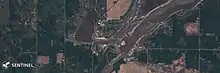 The Tittabawassee River crested at 35.05 feet (10.68 m) late on May 20, resulting in extensive flooding throughout eastern Midland and low-lying parts of its downtown district, and severely damaging most of the village of Sanford.[36][37][38] The extent of the floodwaters could be clearly seen in satellite imagery on May 22.[39] Dow Chemical's Midland operations were threatened by the flooding, but reportedly suffered no serious damage.[40] As of the morning of May 20, no casualties had been reported as a result of the flooding.[41]