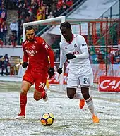 Eder and Spartak Moscow's Nikola Maksimović in March 2018
