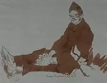 During World War Two, Ainsworth continued to work for Picture Post and also served as a war correspondent and accompanied the American 7th Army on their advance across Europe in 1945.[4] Ainsworth visited the Bergen-Belsen concentration camp three times after the British army entered the complex in April 1945. He made numerous sketches and drawings, often in great detail, while at the camp. In September 1945, Picture Post published several of these drawings along with an article, Victim and Prisoner, by Ainsworth. In the article, Ainsworth attempted to challenge what he saw as the elements of indifference he had encountered in Britain to the Belsen trial, which had started that month.[5] Several of the drawings made by Ainsworth in Belsen were purchased by the War Artists' Advisory Committee and are now held by the Imperial War Museum. Ainsworth also commissioned the author and artist Mervyn Peake to visit Belsen for Picture Post.[6]