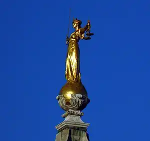 ![]() F. W. Pomeroy's 1906 statue of Lady Justice on the dome of the Old Bailey (Central Criminal Court) in London. | |