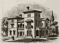 The Edward King House, is a monumentally scaled residence at 35 King street in Newport, Rhode Island, United States. It was designed for Edward King in the "Italian Villa" style by Richard Upjohn and was built between 1845 and 1847, making it one of the earliest representations of the style. It was the largest and grandest house in Newport when it was built. Edward King was the largest landowner in town by 1860, having made his fortune through the China Trade.[4]
