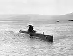 Returning to port on Christmas Day 1942, Young received a signal ordering him to return to the United Kingdom to attend the Commanding Officer's Qualifying Course (COQC).[16] Arriving back in England in January 1943, Young passed the COQC (or perisher as it was commonly known)[2] and was appointed commanding officer of HMS P555, an American S-class boat acquired by the Royal Navy in 1942.[2] Young commanded the boat, known as State Express after the cigarette brand,[17] for three months before being appointed as commander of a new boat, then under construction. On his appointment to P555, Young was the first British RNVR officer to command a submarine.[4][18]
