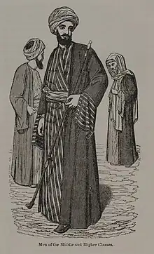 Lane has been criticized for his particularly unsympathetic description of Egypt's Coptic Christian minority, drawn in part from the words of an Egyptian man who presented himself to Lane as a Copt, although other scholars have reported that the interlocutor was, in fact, a Muslim.[40] In his writings, he describes Copts as "of a sullen temper, extremely avaricious, and abominable dissemblers; cringing or domineering according to circumstances.[41] Scholars such as S.H. Leeder have described "a great deal of the morbid prejudice against the Copts" as being inspired by the writings of Lane.[42]