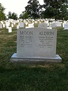 Aldrin died in San Francisco, California, on 28 December 1974, while he was visiting his daughter there,[11] and was buried at Arlington National Cemetery. He was survived by his sister, two daughters, and son, Buzz Aldrin.[2][11] His wife Marion suffered from depression and committed suicide in 1968.[2][12]