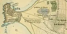 In 1764, the French geographer Jacques Nicolas Bellin published a map of Greater Tyre which included the ruins of the aquaeduct in El Buss, but no settlements.[28] Around 1786, Bellin's fellow countryman Louis-François Cassas visited the place and drew a painting of the ruins of the aquaeduct.[29]